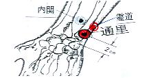 (心包経)手の第3指内側、爪甲根部の点。