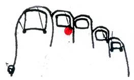 (脾 経)足の第1指の内側で爪甲角から後方2㎜。