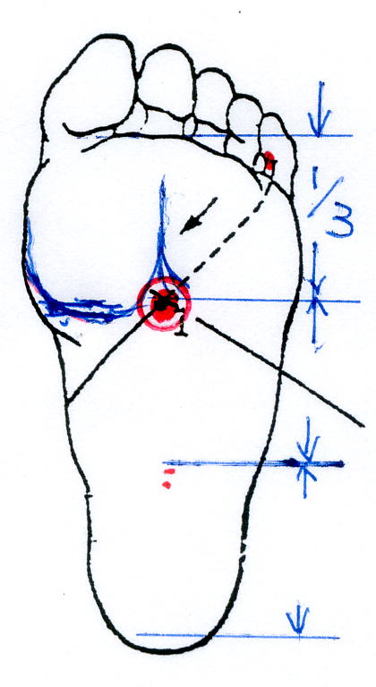 (腎 経)足裏の第2.第3指間で、前方から1/3にある