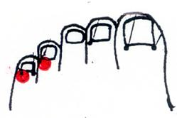 | 5-①至陰 しいん(膀胱経) 足の第5指の爪甲根部、中央で後方2ミリの点。 |